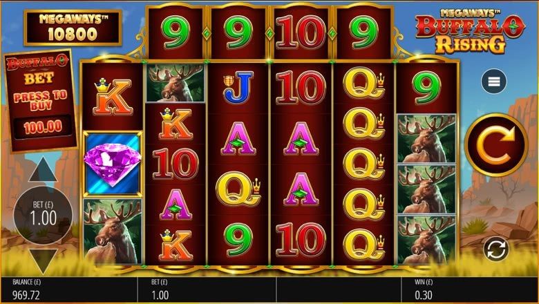 The RTP for Bison Rising Megaways is 96.50%. For every £10 bet, the average return to player is £9.65 based on long periods of play.