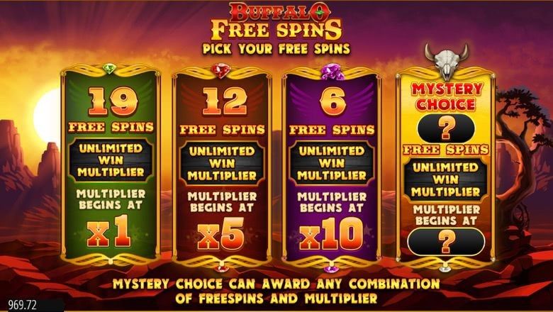 Watch out for the free spins feature that starts between 5-15 free spins and, finally, a prize multiplier that increases during free spins - with no limit! Simply discover 4 or more Scatters and watch the multiplier rise like the titular Buffalo.