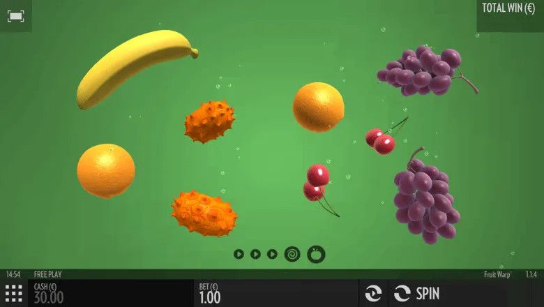 Fruit Warp does not include a traditional free spins mode but instead has a special Fruit Mode bonus game. During this mode a free respin is awarded for every successfully landed fruit that matches when the mode was activated.