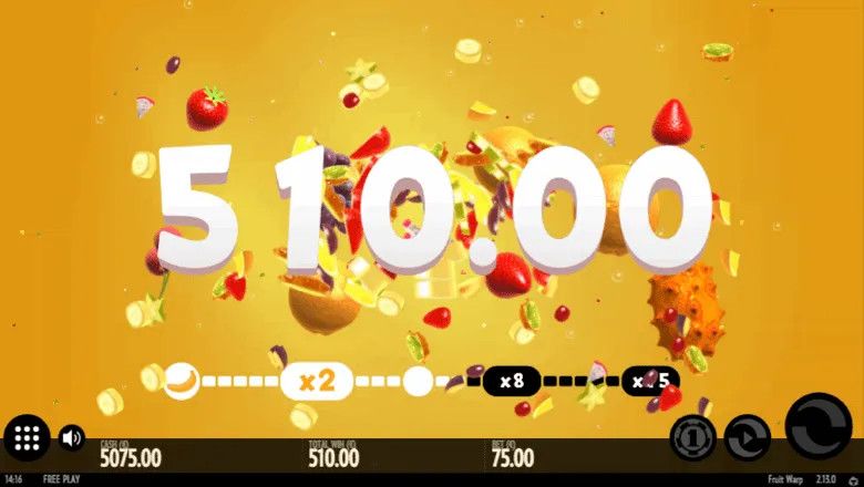 Fruit Warp does not contain a jackpot but has a juicy top prize of 11,000x your total bet in real cash prizes.