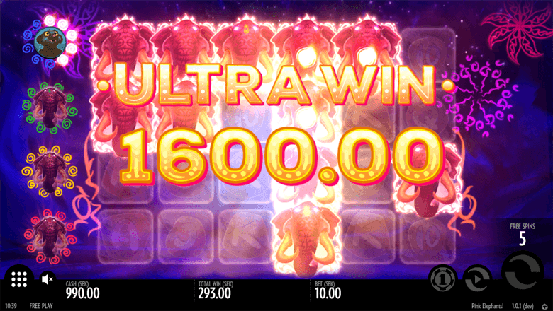 The RTP for Pink Elephants is 96.10%. For every £10 bet, the average return to player is £9.61 based on long periods of play.