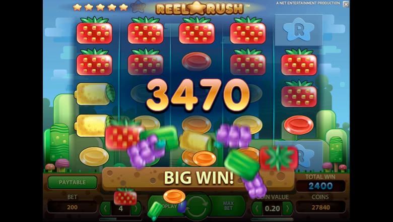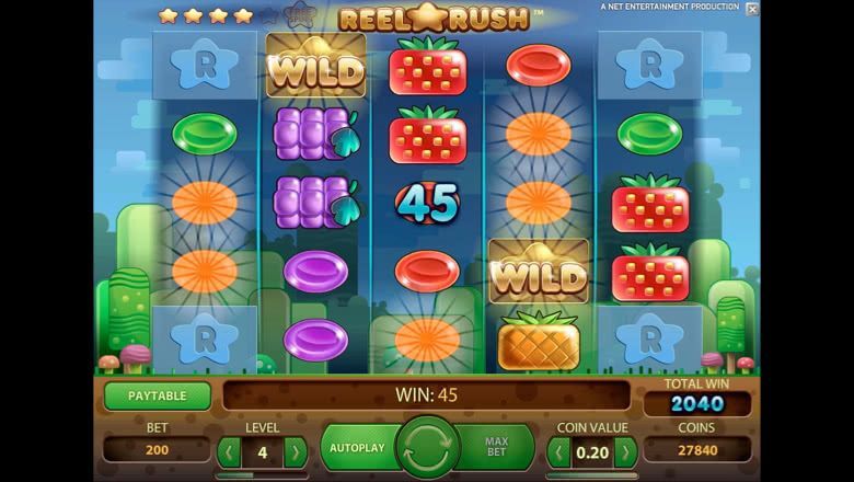 Fill the reels with fruity fun and get more than a sugar rush in the Reel Rush slot by NetEnt. Match up tasty fruit symbols and expand the reels on every win to unlock up to 1,875 delicious ways to win. Match up even more symbols to unlock up to 8 free spins and increase the number of ways to win to a whopping 3,125. Also be on the lookout for special golden Wild stars that substitute for any paytable symbol.