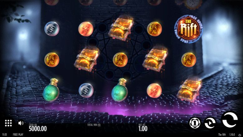 Venture down the eerie city streets and come face to face with the abyss in The Rift slot by Thunderkick. Something spooky is going on here and there's monsters of all sorts coming out of the spectral Rift. Match up the floating symbols along the 17 available to get out with your lives (and some cash prizes). Discover the cosmic Bonus symbols to unleash untold powers including free spins and the Rift Spins bonus feature.